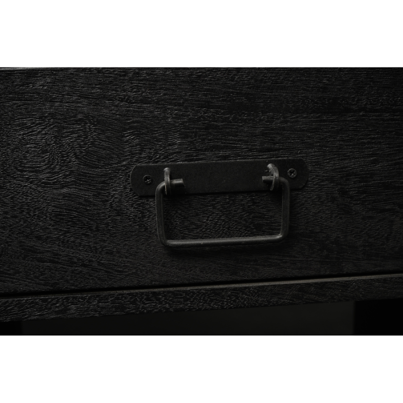 Vakkenkast Boaz Black is uitgevoerd in het mangohout. Het metalen frame en de metalen handgrepen zijn afgewerkt met een zwarte...