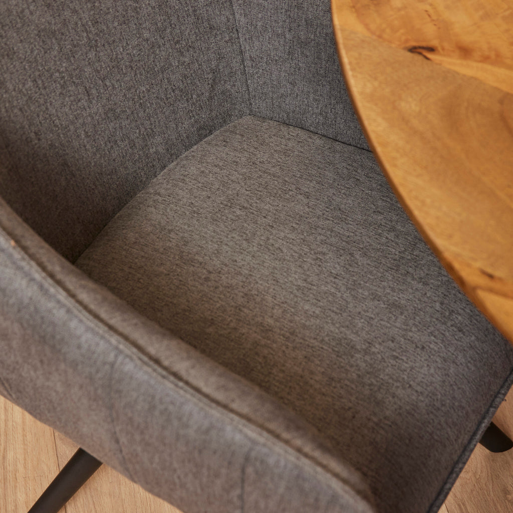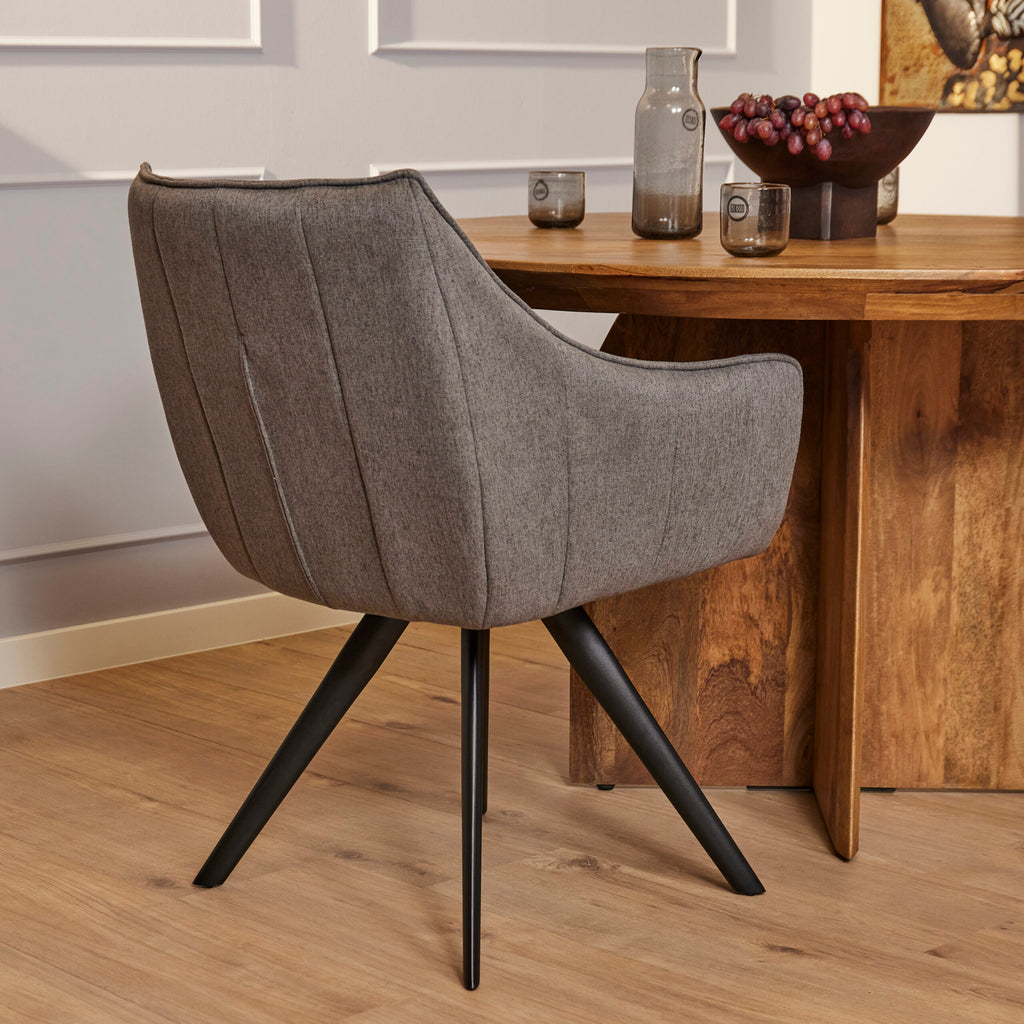 Der Esszimmerstuhl Luca Anthrazit ist mit dem Stoff Nea, einem gewebten Stoff, gepolstert. Der Stuhl ist um 180 Grad drehbar...