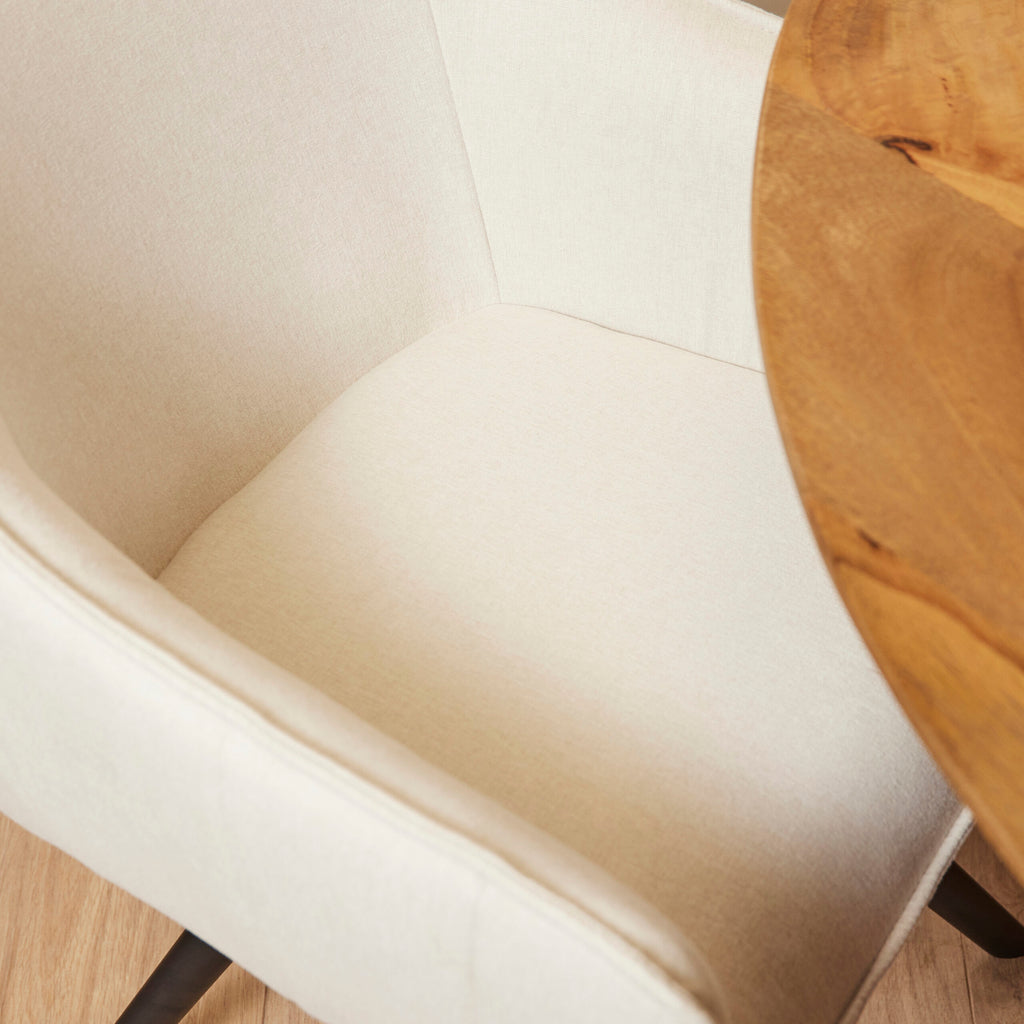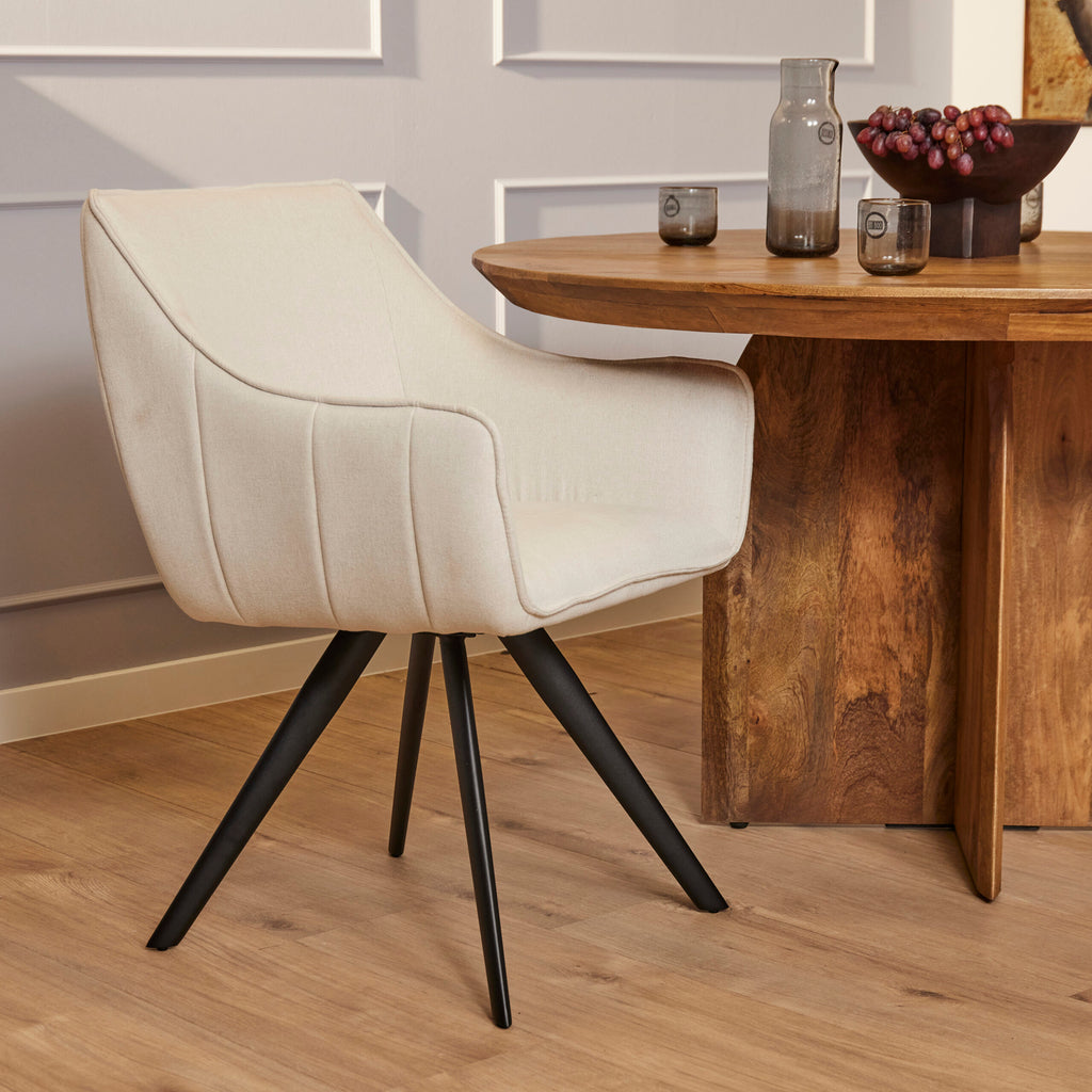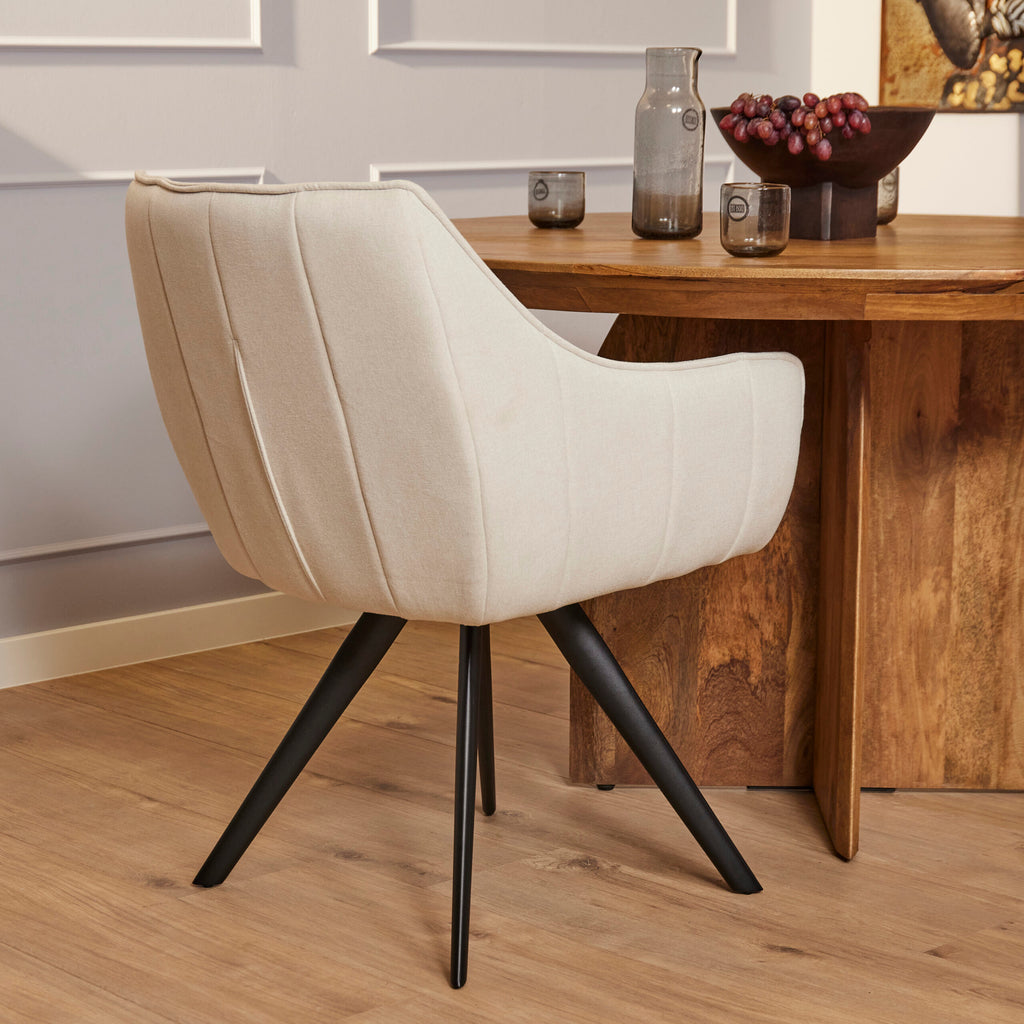 Der Esszimmerstuhl Luca Sand ist mit dem Stoff Nea, einem gewebten Stoff, gepolstert. Der Stuhl ist um 180 Grad drehbar...